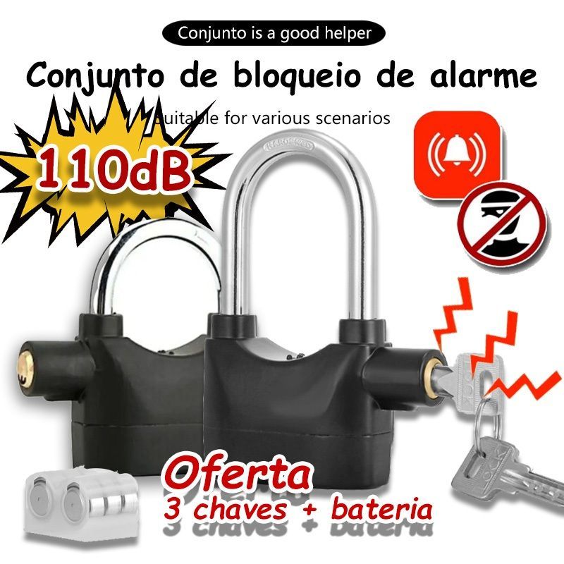 Proteja seu patrimônio com a máxima segurança! A trava com alarme sonoro para moto e bike é a solução definitiva para proteger sua moto e bicicleta ou o portão de sua casa ou comércio de maneira eficiente e confiável. Evite preocupações e suspresas indesejadas, seja na cidade, no campo ou durante suas aventuras. É possível utilizar a trava como cadeado comum ou com alarme sonoro. Estas funções são configuradas de acordo com o lado que a haste é colocada. Todos os detalhes estão na ficha técnica abaixo, nas imagens do anúncio e na embalagem do produto.