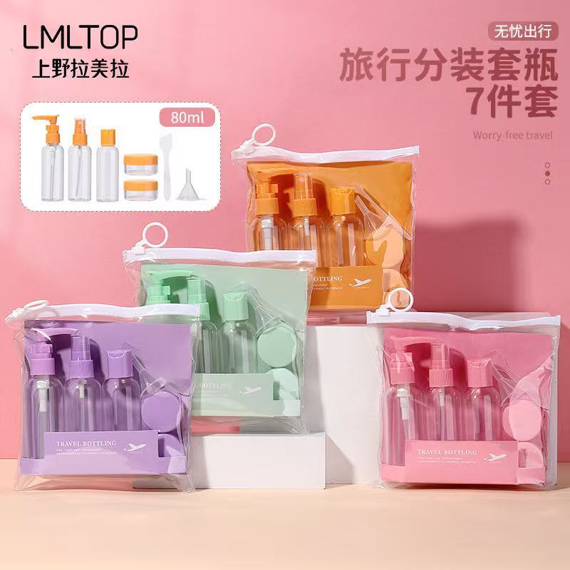 Mini Kit 7 Peças Porta Frascos Viagem Organizador Shampoo Condicionador Creme Perfume LY-1122